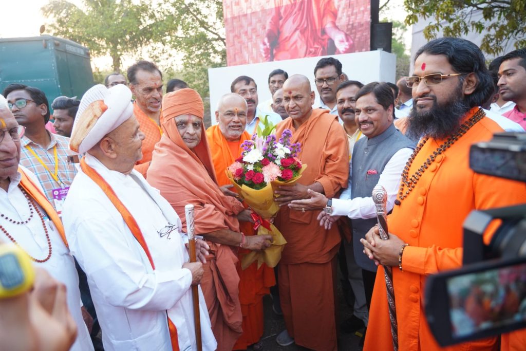 कोल्हापुर : डी वाय पाटील विद्यापीठाचे कूलपती ड़ॉ संजय डी पाटील यानी बुधवारी सुमंगल पंचमहाभूत लोकोत्सवास सहपरिवार सदिच्छा भेट देऊन पाहणी केली. महोत्सवाचे संकल्पक काडसीधेश्वर स्वामीजिंचे आशीर्वाद घेतल्यानंतर त्यानी सहपरिवार महोत्सवातील विविध स्टॉल्सना भेटी देऊन माहिती घेतली. यावेळी साधूगण, शिवाजी विद्यापीठ व्यवस्थापन परिषदेचे सदस्य पृथ्वीराज संजय पाटील, सौ. वृषाली पाटील, सौ. पूजा पाटील,संयोजन समन्वयक राजेन्द्र लिंगरस, ड़ॉ संदीप पाटील, हितेंद्र पटेल आदि मान्यवर उपस्थित होते .