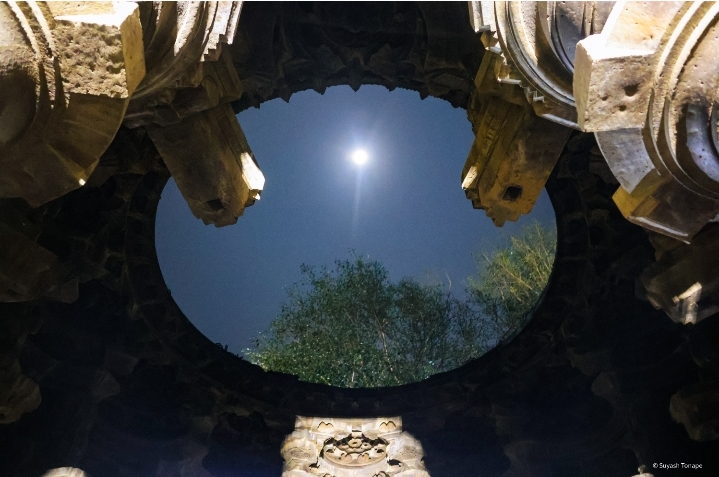 त्रिपुरारी पौर्णिमेच्या रात्री जेव्हा चंद्र या मंदिरातील स्वर्ग मंडपाच्या गोलाकार भागावर येतो त्या ठिकाणावरुन चंद्राचा पूर्ण प्रकाश त्याच आकाराच्या चंद्रशिलेवर पडतो.काही सेकंदांचा हा पूर्णतेचा आनंद असतो. अगदी खगोलशास्त्रज्ञांच्या घड्याळातून घेतलेल्या अंदाजानुसार केवळ सहा ते बारा सेकंदाचा हा परिपूर्ण गोलाकारांचा प्रकाशीय मिलाप असतो.
